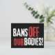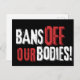 Zeigen Sie Ihre Unterstützung für das Recht der Frauen auf Körperautonomie mit dieser "Boans Off Our Bodies"-Postkarte, die mit grunge-weißem und rotem Schriftart auf schwarzem Hintergrund für die Wahl steht.