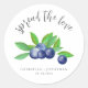 Verteilen Sie die Liebe mit diesen einfachen, aber modernen Labels für Ihre Gastgeschenke Hochzeiten von Blaubeermarmelade. Der Aufkleber zeigt ein Aquarellbild von Heidelbeeren mit dem Zitat, das die Liebe in dunkelgrauer Typografie verbreitet. Personalisieren Sie mit den Namen der Braut und des Bräutigams und dem Hochzeitstag.