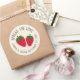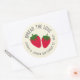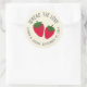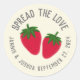 Zwei illustrierte Erdbeeren werden durch einen anpassbaren Text gerahmt, um diese runden Aufkleber zu einem süßen Weg zu machen, um Hochzeitsfavoriten oder Duschvorzüge von Erdbeermarmelade zu kennzeichnen oder zu konservieren und die Liebe an Freunde und Familie zu verteilen und das Ehegattendatum zu begehen.