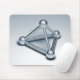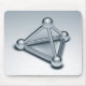 Ein Mousepad mit 3D CGI machte Bilder einer dreiseitigen, reflektierenden metallischen Pyramidenstruktur aus röhrenverbundenen Kugeln.