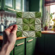 Mit dieser grünen Keramik-Kachel, in der die künstlerische Gestaltung geprägter Blätter in einem flachen, zweidimensionalen Raum geschickt eingefangen wird, laden Sie die Naturillusion in Ihre Zuhause ein. Ein Spektrum von Grüntönen, vom leichtesten Limonen bis zum tiefsten Waldschatten, wird so detailliert dargestellt, dass jedes Blatt sanft von der Oberfläche aufsteigt. Die Prägetechnik der Imitate erzeugt eine visuelle und taktile Intrige, während der gekrackte Glaze-Effekt dem Auge eine zusätzliche Textur verleiht. Ideal für alle, die die Ästhetik von gehobenen Designs ohne Wartung schätzen, bietet diese Kachel eine raffinierte botanische Touch zu jedem Zimmer, die Kunst mit dem Zauber der Natur verbindet.