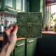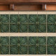Diese atemberaubende Keramik ist eine Hommage an den Jugendstil mit einer Symphonie von grünen Farben und Bio Motiven. Der tiefgrüne smaragdgrüne und waldgrüne Hintergrund wird durch die reiche olivenfarbene und subtile Jäger-grüne Detaillierung schön ergänzt. Vier elegante Blätter entfalten sich in jeder Ecke, umgeben von einer zentralen Vierfolie, die auf einen versteckten Klee hindeutet - ein Symbol für Glück und Wohlstand. Das geprägte Design, auch wenn es flach gedruckt ist, verleiht der Illusion von Tiefe und Textur die Wesensart der Naturkunst in Ihren Raum. Diese dekorative Kachel mit Vintager Farbpalette und fließenden Linien, die sich perfekt für ein Akzent in einer raffinierten, naturlich inspirierten Dekoration eignet, verleiht der Vergangenheit einen Hauch.