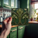 Genießen Sie die elegante Verbindung von Natur und Kunst mit unserer Keramik "Verdant Vines". Diese exquisite Kachel besticht durch eine üppige Mischung aus Grüntönen, von reichen Oliven bis zu sanfter Patina und Chartreuse, die alle wunderschön gerahmt sind von den warmen, antiken bronzeartigen Linien, die sich wie die Stiele einer Vintagen botanischen Illustration formen und fließen. Die mit einer ausgefeilten Drucktechnik gefertigte Kachel besticht durch eine Illusion von Tiefe und Textur ohne Relief, die jedem Raum Eleganz und historischen Charme verleiht. Ideal, um eine Statuenmauer, einen dekorativen Backsplash zu schaffen oder einfach als eigenständiges Kunstwerk, um Ihrem modernen Lebensraum eine Touch vergangener Schönheit hinzuzufügen.