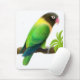 Bearbeiten Sie Malerei eines Grün verdeckten Lovebird, ein populärer kleiner Haustierpapagei ursprünglich von Afrika mit der Spritzpistole. Lovebirds sind in den Paaren gut am unterhaltensten. Illustration durch Carolyn McFann.