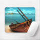Verdünntes Boot an einem verschollenen Sandstrand Mousepad