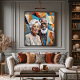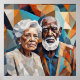 Dieses geometrisch gestaltete Stück zeigt ein älteres Paar mit Liebe und Gelassenheit, indem es farbenfrohe Dreiecke in warmen und kühlen Tönen verwendet. Die verwobenen Formen symbolisieren ein gemeinsames Leben, während lebendige Farben die Stärke und Harmonie ihrer Verbindung im Laufe der Zeit hervorheben.