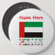 Personalisierter Knopfpin mit der UAE-Flagge und den Worten VEREINIGTE ARABISCHE EMIRATE unter der Flagge in den Farben der Flagge. Darüber ein Bereich, um ihn mit einem Namen in roten Buchstaben zu personalisieren, für sich selbst oder als kleines Geschenk. Spaß für Familientreffen. Cooler Weihnachtsstrumpf-Füller.