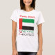 Das kurzärmelige Damen-T-Shirt zeigt die VAE-Flagge mit den Worten VEREINIGTE ARABISCHE EMIRATE unterhalb der Flagge in den Farben der Flagge. Darüber befindet sich ein Bereich, um ihn mit einem Namen in roten Buchstaben zu personalisieren, für sich selbst oder als Geschenk. Das Design befindet sich auf beiden Seiten des Shirts. Spaß für Familientreffen.
