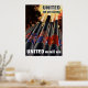 Dieses Vintage Kriegsposter sagt: "Vereint sind wir stark, Eins gewinnt". Es zeigt die Fahnen der Alliierten Nationen während des Zweiten Weltkriegs, befestigt an Kanonen, die in den Himmel schießen. Dieses Design wäre gut für jeden, der Liebe Geschichte oder WW2. Feiern Sie die amerikanische und die Weltgeschichte mit diesem digital restaurierten Vintagen Kriegsposter-Produkt. Woll mehr Militär- und Geschichtsprodukte? Karo