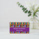 Fördern Sie Ihren neuen Roman oder anderes Buch mit diesen bunten Marketings-Geschäftskarten. Vervollkommnen Sie für jeden möglichen Autor, diese Karten haben ein helles Bücherregalmuster mit einem lila Bar auf beiden Seiten, in denen Sie alle Ihre persönlichen Details addieren können.