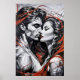 Ein intensiver Kuss zwischen zwei facettenreichen, geometrischen Gesichtern – Haut in Licht- und Schattensplitter gebrochen – während sich scharlachrote Bänder wie Blut, Leidenschaft oder Schicksal winden. Der scharfe Kontrast zwischen Monochrom und lebendigem Rot erzeugt dramatische Spannung. Ein kraftvolles Kunstwerk für Mode, Film, Literatur oder emotional ansprechende Luxusmarken.
