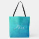 Diese stilvolle, aqua-farbene Tote-Tasche eignet sich für jeden Anlass, von Strandtagen bis hin zu Shoppingtouren. Die geräumige Inneneinrichtung und das durchgängige Design machen es zu einer praktischen Wahl, um alle wesentlichen Elemente zu tragen und gleichzeitig Ihrem Outfit einen Pop Farbe zu verleihen.