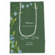 Brautparty Mittlere Geschenktasche mit einem eleganten Bouquet von weichblauen vergessenen Blume mit hellgrünen Blätter und geschwungenen Stielen, Frühlings- oder Sommerpastellfarben, einem romantischen, hellen Bouquet aus Wildblumen. Botanische digitale Wasserfarbe. Niedliche Blume Botany Brautparty Medium Geschenktasche. Vergessen-Me-Not Collection