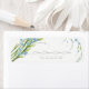 Rücksendetikett mit elegantem Bouquet aus weichblauen vergessenen Blume mit hellgrünen Blätter und gewölbten Stielen, Frühlings- oder Sommerfarben in natürlichen Pastellfarben, einem romantischen, hellen Bouquet aus Wildblumen. Botanische digitale Wasserfarbe. Niedliche Blume Flaschen Rücksendeadresse Etikett. Vergessen-Me-Not Collection