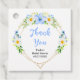 Dieses wunderschöne und elegante Dankeschön-Tag bietet Aquarellblau vergessene-me-nots, Gänseblümchen und Blattwerk auf einem goldenen geometrischen Rahmen. Der Text kombiniert handgeschriebene Skript- und Serif-Schriftart für ein stilvolles und modernes Aussehen. Das ist ideal für ein rustikales Brautparty im Frühling oder Sommer.
