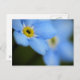 Dieses Objekt zeigt ein Makrofoto von zarten blauen und gelben Vergessenmeinblüten, die im Spätnachmittagssonne im Frühling aufgenommen wurden.