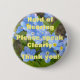 Knopf/Abzeichen mit reizendem nahem hohem Foto von hellblauem vergessen mich nicht Blumen. Stark von der Anhörung, sprechen Sie bitte offenbar, danke! Text.