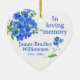 Eine schöne vergiss mich nicht Gedenkschmuck. Dieses einfache Zitat-Design enthält das Zitat "In Loving Memory" in blau. Dekoriert mit Rüschen vergessen mich nicht Blume. Personalisieren Sie Ihre Daten mit einem Namen und Datum.