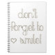 Vergessen Sie nicht, zu lächeln Notizbuch, das dieses entzückende Gekritzeleinzelteil kundengerecht ist. Bitte Karo heraus mein Speicher für andere ähnliche Einzelteile.