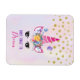 Ein inspirierendes Zitat, das besagt: Vergiss nicht zu träumen. Die Einrichtung ist mit einem trendigen rosa Einhorn gestaltet. Mit einem extravaganten Blumenkopfteil verziert. Whimsikale Schmetterlinge fliegen herum. Fake Goldkonfetti sprinkletterten oben entlang. Ein blasser lila und gelber Aquarellhintergrund.
