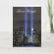 Vergessen Sie nie, Erinnerung von denen, die durch die Tragödie am 11. September an den Twin Towern des World Trade Centers in New York City beeinflußt werden. Diese Fotografie (durch US DOD) stellt die Erinnerungstürme des Lichtes im hellen blauen Neonc$hochragen über die dunklen Nachtskylinestadtwolkenkratzer und -lichter dar, in denen die Gebäude verwendeten, um zu sein. Stützen Sie die Gelegenheit und zeigen Sie Ihre Sorgfalt und betreffen Sie als patriotischer USA-Bürger.