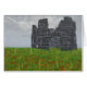 Eine 3D-Szene aus Vue, die den Ort einer alten Schlacht darstellt, mit nur den zerbröckelnden Ruinen eines mittelalterlichen Steinturms und roten Blume im Gras zum Gedenken daran. Der fallende Regen und der weiche Wasserfarbeneffekt verstärken die Traurigkeit der Bergwelt.