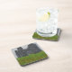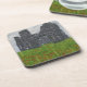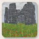 Eine 3D-Szene aus Vue, die den Ort einer alten Schlacht darstellt, mit nur den zerbröckelnden Ruinen eines mittelalterlichen Steinturms und roten Blume im Gras zum Gedenken daran. Der fallende Regen und der weiche Wasserfarbeneffekt verstärken die Traurigkeit der Bergwelt.