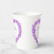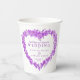 Vergessen Sie mir nicht Blume in einem Herzkranz botanische Tinte zeichnend und Aquarell waschen in lila auf weißen Hochzeitspapier Tassen. Fügen Sie Ihren eigenen Namen und das Hochzeitsdatum hinzu. Andere Farben und passende Hochzeitsartikel sind erhältlich. © Original Tinte zeichn und Aquarell Waschkunst und Design von Sarah Trett für www.mylittleedenweddings.com auf Zazzle.