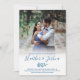 Eine blumengeschmückte Hochzeitseinladung mit dem in blau geschriebenen Einladungstext auf einem weißen Farbverlauf am Ende Ihres Fotos. Ihre Namen und Details werden durch einen Zweig der Vergessenmerzen getrennt. Fügen Sie Ihr eigenes Foto zur blumengeschmückten Hochzeitseinladung hinzu. Die Rückseite weist ein hübsches Blume-Muster von blauen Vergessenmernots auf.
