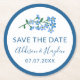 Floral Papier Untersetzer in blau und weiß mit einem vergessen, dass ich nicht zweig. Das Design ist durch eine runde, tiefblaue Grenze gerahmt. Fügen Sie Ihre Namen in einem charmanten, dünnen Skript über Ihrem Hochzeitstag in modernen Briefen.
