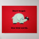 Elefant mit einem Band, das um den Kofferraum geklebt ist, und Botschaft: "Vergiss nicht: Benutze nette Worte." Ideal für ein Lehrergeschenk für den Klassenraum.