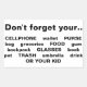 Weil Ihr Gewissen will, vergessene Dinge zurückzugeben, aber Ihre Geduld will, diese verlorenen Dinge zu vergessen existieren (OK das Kind ist schwieriger zu ignorieren). Dieser Aufkleber, der an der Tür oder am Fenster angebracht wird, oder wo die Augen des Pax auf das Fahrzeug treffen, bevor er das Fahrzeug verlasse, hilft ihnen, sich selbst zu überwachen. Dies rette Ihnen Zeit und Gravitation.