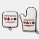 Avid Duplikate Bridge-Spieler und Bridge-Lehrer erhalten einen Kick mit diesem Bridge-Sprichwort Backofen Mitt und Pot-Inhaber Set mit einer Dosis Bridge / Duplikat Bridge-Spaß! Mit den vier Karten-Anzügen zusammen mit dem Sprichwort "Grow your Brain Strong Play Duplicate Bridge". Erinnerungsfähiges Mitt-Backofen und Set für jeden Brückenspieler, der den Geist mit Bridge wachsen möchte, wann immer er backt oder kocht!