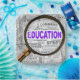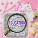 Eine Bildung mit einer Lupe über dem Wort Bildung. Dieses Design wirkt auf diese Paper-Teller sehr effektiv