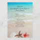 Ein Hochzeitsprogramm für den wahren Strand für eine lässige und kurze Zeremonie am Meer. Die flachen 12x18 inch Karten enthalten eine Strandszene, Sand Dollar, Seestern und rosa Plumeria Blume. Der schwarze Text ist leicht mit den Namen der Braut und des Bräutigams an der Spitze, Datum und Ort der Zeremonie und einem Absatz für die Zeremonie Informationen. Fügen Sie auch eine Nachricht an Gäste, wenn Sie möchten. Notstrocknen sind optional, mit Papieraufrüstung.