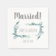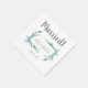 Die individuell gestaltbaren Servietten eignen sich ideal für Hochzeitsfeiern und andere besondere Anlässe. Das moderne bläulich-blumengeschmückte Bild mit drei Textfeldern in modernen Schriftart.