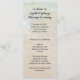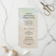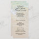 Grosses, zweiseitiges Hochzeitsfeierprogramm mit Strandwasserhintergrund. Grünes Wasser und feuchter Strand Sand ist der Hintergrund auf beiden Seiten. Der schwarze, gedruckte Schriftart wird für alle Texte verwendet, außer für den Titel und die Nachricht, die Skript ist. Um eine lässige Hochzeit am Meer zu feiern, ist der Text leicht zu ändern und Räume zu benutzen, wo es benötigt wird, um auszufüllen. Auf einer großen, 4x9-Zoll-Kartengröße, aber das Bild funktioniert für alle Größen. Wählen Sie eine andere Größe und verteilen Sie den Text, wenn Ihre Feier länger ist.
