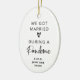 Dieses schlichte und stilvolle, schwarz-weiße Weihnachtsschmuck sagt: "Wir haben während einer Pandemie verheiratet" in trendiger, handgeschriebener schwarzer Schrift und mit einem Schreiber geschmückt. Fügen Sie auch Ihre Namen und Ihr Hochzeitstag hinzu, und Ihr persönliches Foto auf der Rückseite. Eine schöne Art, das Gute dieses Jahres zu erinnern und zu feiern!