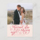Feiern Sie Ihr erstes Weihnachtsfest verheiratet mit dieser stilvollen Urlaubspostkarte mit unserer handgeschriebenen Typografie, die "Verheiratet und froh" sagt und von unseren handgezeichnet Verliebten für einen Urlaubsstil betont wird. Fügen Sie Ihr Foto zur Vorderseite und ein zusätzliches Foto auf der Rückseite mit Raum, um Ihre eigene Text schreiben; ideal für das frisch verheiratete Paar, um als Hochzeitsankündigung oder danke Karte für Sie rund um den Urlaub.