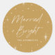 Moderne Ferienaufkleber mit "Verheiratet und hell" in einem handgeschriebenen Drehbuch, umrahmt von einem Rand mit weißen Sternen vor einem goldenen Hintergrund. Personalisieren Sie die verheirateten und hellen Aufkleber, indem Sie unten Ihre Namen hinzufügen. Die Aufkleber arbeiten gut als Umschlag Aufkleber, um Siegel Gefallen Taschen, und mehr!