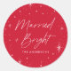 Moderne Ferienaufkleber mit "Verheiratet und hell" in einem handgeschriebenen Schrift, umgeben von einem Rand mit weißen Sternen vor einem roten Hintergrund. Personalisieren Sie die verheirateten und hellen Aufkleber, indem Sie unten Ihre Namen hinzufügen. Die Aufkleber arbeiten gut als Umschlag Aufkleber, um Siegel Gefallen Taschen, und mehr!