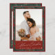 Elegante, frisch vermählte Ehepaare Weihnachtskarte mit rotem und grünem Winterbotanischem Foto.