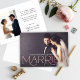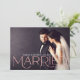 Diese moderne und elegante Hochzeitsankarte bietet "Verheiratet" in einzigartigen Imitate Rose Gold-Folie Serif über Ihrem vollbluteten Foto Hochzeit. Auf der Rückseite der Karte befindet sich ein zweites Foto in vertikaler Form und ein einfacher Text, der mit Ihren Hochzeitstag-Details und guten Wünschen personalisiert werden kann und mit Ihrem neuen verheirateten Namen signiert wird. Beachten Sie, dass die Schwarz-Weiß-Farben geändert werden können.
