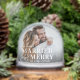 Mit dieser personalisierten Verheirateten & Merry-Schneekugel von Redwood & Vine Design Co. können Sie die Magie Ihres ersten Weihnachtsgeschehens bewundern und auf beiden Seiten das ausgewählte Foto, die Namen und die Phrase Verheiratet & Merry in elegantem Stil präsentieren. Dieser Globus ist ein bedeutsamer Urlaubssake oder ein herzliches Geschenk für Neuvermählte und verbindet Romantik und saisonalen Beifall in einem zeitlosen Stück.