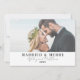 Feiern Sie Ihr erstes Weihnachtsfest als verheiratetes Paar, indem Sie Ihre Freude mit den Lieben durch diese einfache und minimalistische Karte teilen. Mit dem Satz "Verheiratet & Merry" auf der Vorderseite, das Design beinhaltet Ihre Namen und Hochzeit Jahr, sodass es ein perfekter Weg, um Ihr besonderes Jahr zu gedenken. Die Karte zeigt Ihnen zwei Ihrer liebsten Fotos - ob aus Ihrem Hochzeitstag oder aus anderen hochgeschätzten Momenten zusammen - mit einer subtilen weißen Transparenz für einen ätherischen Effekt. Sie können die Transparenz im Editor ganz einfach entfernen, wenn Sie einen helleren Look bevorzugen. Mit dieser Karte können Sie Ihre Liebe feiern und Ihnen einen angenehmen Aufenthalt garantieren. Verheiratete und fröhliche, frisch verheiratete Weihnachtskarte Einfaches elegantes Foto. Erhältlich als gedruckte Ankündigung oder als digitale Ankündigung zum Download, dass Sie per E-Mail senden oder vor Ort gedruckt haben können!