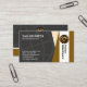 Die Karte verfügt über eine schwarze Abdeckung mit einem grauen, darunter liegenden Globus-Aufdruck, der durch ein braunes Rechteck-Design auf der rechten Seite eingeprägt ist. Hier finden Sie Ihr goldenes Logo neben dem umgekehrten Firmennamen. An der Spitze sind Ihr prestigeträchtiger Name und Ihr Jobtitel, während die Kontaktdaten in der Nähe der Basis liegen.