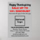 Alles Gute zum Erntedankfest! Ein Feiertag, um zu feiern und für die Segen, die wir erhalten haben zu danken. Es ist auch einer der Feiertage, um für Ihr Unternehmen zu werben. Individuell gestaltbares Poster mit Erntedank Sale, Ihrem Firmennamen und anderen Informationen. Poster, das Sie als Marketing-Material verwenden können, um mehr Kunden anzuziehen. Personalisieren Sie es und nutzen Sie es, um mehr Kunden zu überzeugen, Ihre Produkte oder Kunden zu kaufen, um Ihre Dienstleistungen in diesem Erntedank zu mögen. Designfarben sind schwarze und rote Texte auf grauem Hintergrund. Inhalte sind Glückwunsch Thanksgiving Gruß, Verkaufstexte mit Prozent Rabatt, die Sie anbieten, Verkaufstermine, Ihr Firmenname, Logo, Adresse, Telefonnummer, E-Mail und Website oder Ihre Business Social Media-Seite. Bitte Karo des Erscheinungsbildes nach dem Hochladen von Logos und Schriftzeichen. Wenn Ihnen das Aussehen gefällt, können Sie jetzt Ihre Bestellung aufgeben. Wenn Sie das Logo und die Texte ändern und verschieben müssen, um auf dieses Poster oder auf die Größe und Form, die Sie wählen, passen Sie bitte das Design-Tool an. Sie können auch andere Änderungen im Design-Tool nach dem Aussehen dieses Posters, die Sie bevorzugen, wie zum Beispiel die Änderung der Hintergrundfarbe, Schriftart Farbe und Schriftart Stil. Alles Gute zum Erntedankfest! Wir wünschen Ihnen mehr Umsatz in diesem Urlaub.