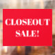 Lass deinen Kunden, dass du mit diesem Store Closeout Sale Red Business Window Cling aus dem Geschäft aussteigen wirst. Es ist ein kühn klassisches einfaches Design mit anpassbarem roten Hintergrund und großen weißen Buchstaben. Passen Sie an, wenn Sie möchten. Erhältlich in verschiedenen Größen.