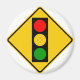 Internationale Straße und Autobahnwarnschild beraten von einer bevorstehenden Ampel.
