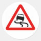 Einfache grafische Darstellung eines rutschigen Warnzeichens für den Straßenverkehr. Bilder auf verschiedenen Geschenken und Produkten erhältlich. Aufkleber.
